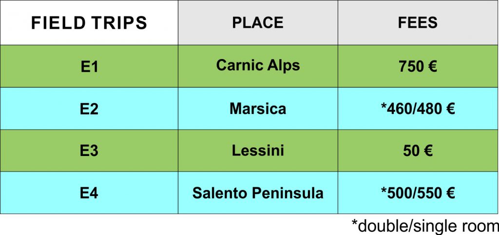 Field trips: as field trips will be organized according to a min. and max. number of participants, places will be granted in strict order of registration. Thus we invite you to register in advance to book a place for your favorite field trip/s. In case of cancelled field trips or overbooking, participants will be informed before the payment deadline.